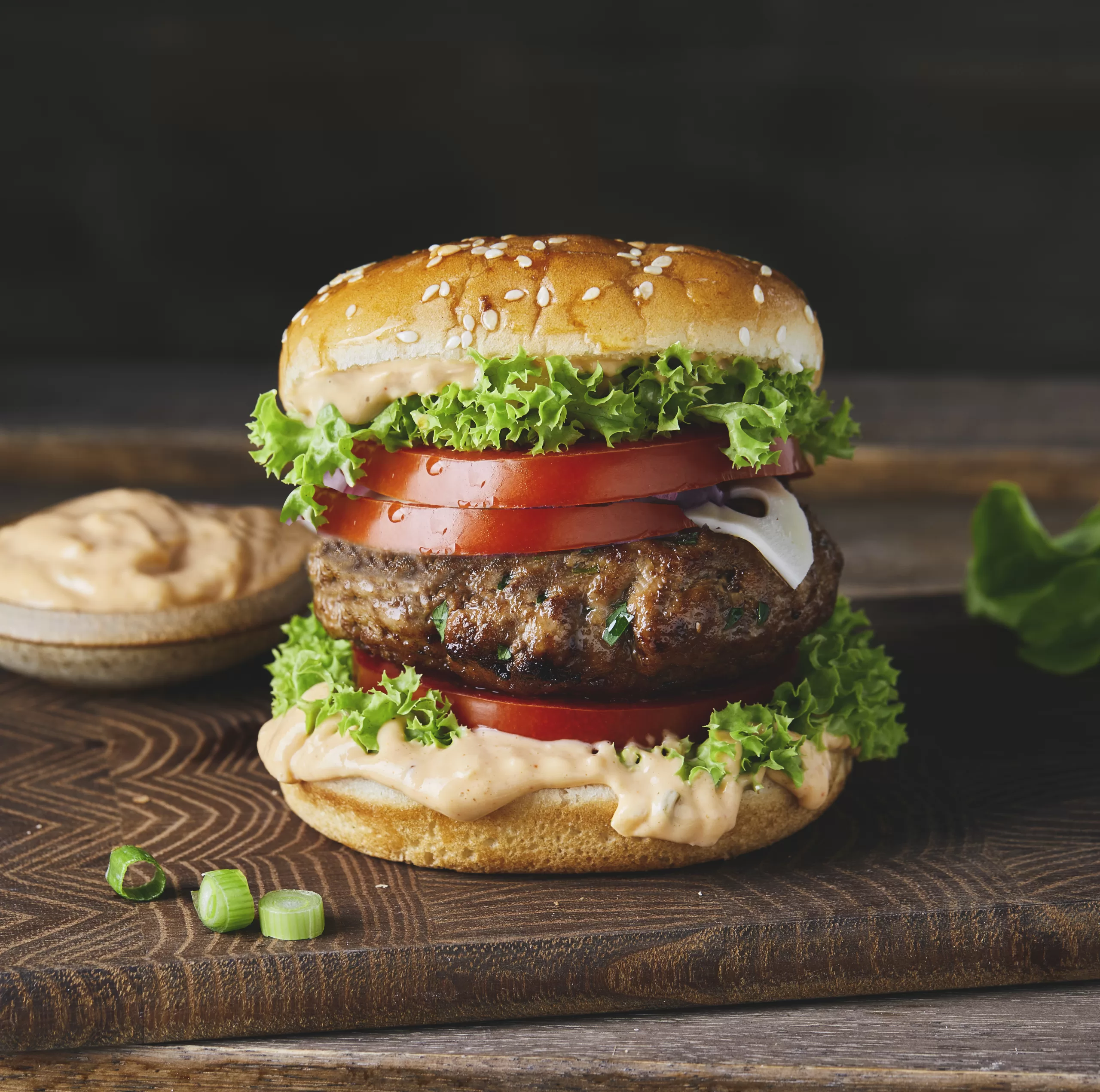 Hamburguesa de 220grs., lechuga, tomate, mayonesa, papas rústicas