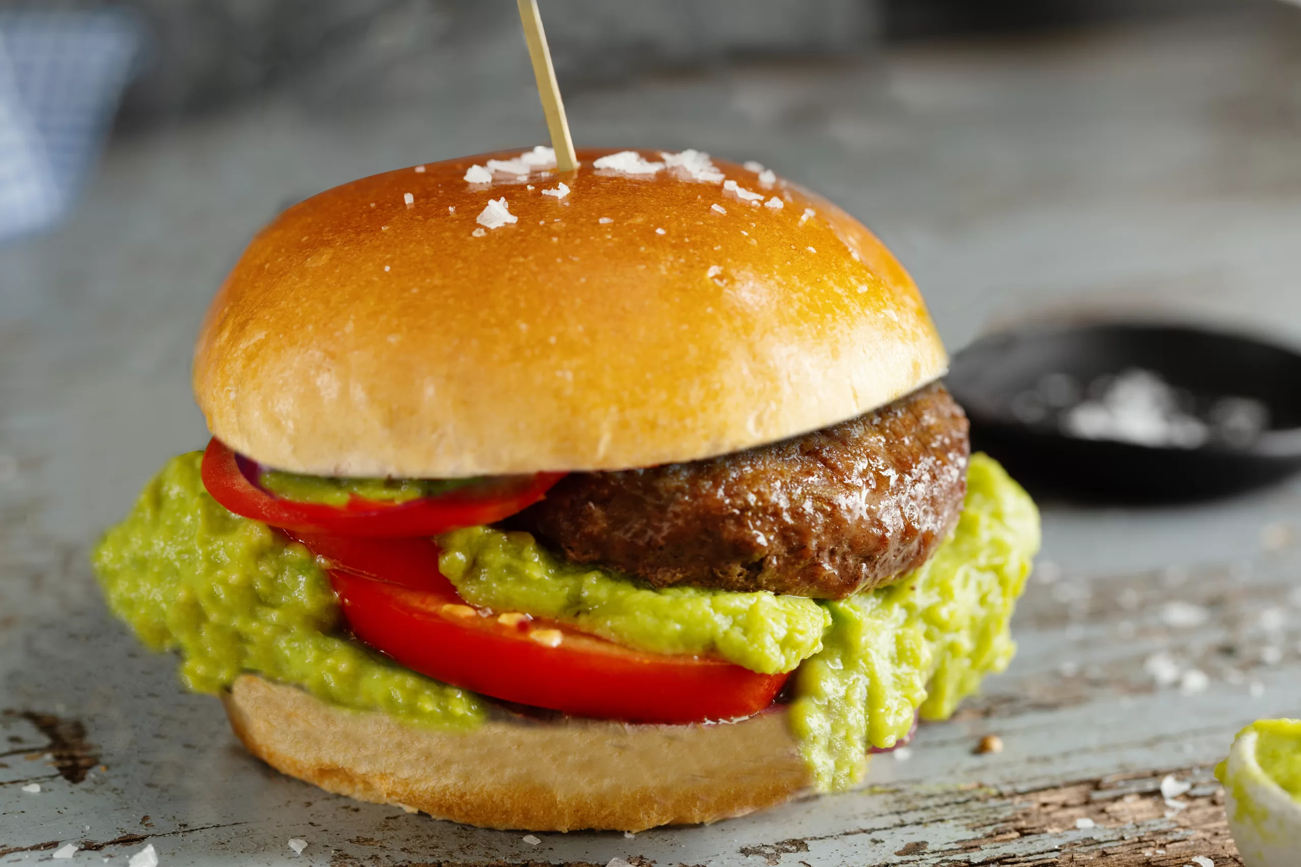 Hamburguesa de 220 grs, tomate, palta, mayonesa, papas rústicas